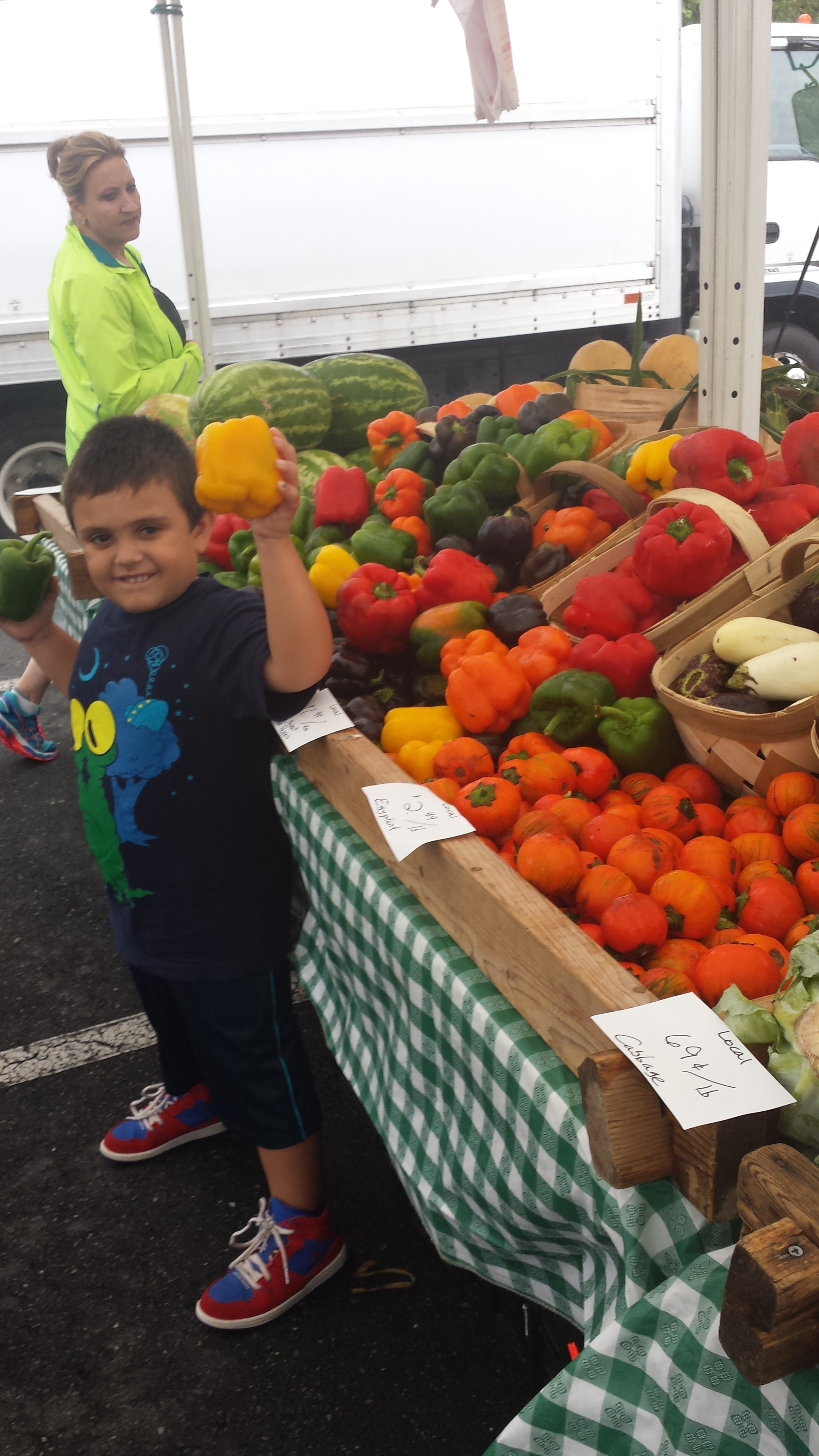 With farmer’s markets seemingly happening daily within 10 miles of our house, I yearn to sneak out for a leisurely lunch to explore the stories of the people truly living the farm-to-table movement. The last farmer’s market we visited, at Robinson’s Farm beside Hawthorne’s pizza, takes place on Wednesdays and Saturdays and offers tables of fresh farm produce, homemade gourmet cookies and–one of my favs–Duke’s Fresh Bread. My veggie medley of purple bell peppers, plum, pink, yellow and white fingerling potatoes, deep green squash, heirloom tomatoes and sweet yellow peppers was drizzled with olive oil and devoured with the help of Duke’s Rosemary and Parmesan Focaccia and his crusty Sourdough. I’m glad I don’t have to go far for fresh, NC-farmed, inexpensive produce. And I’m grateful to have met the real people behind the food. They helped me appreciate cooking a little more–and seeing farmer’s markets along my 15-minute drive to work makes me grateful we moved here. The farmers and food-sellers at Robinson’s Farms get 14 Thumbs Up–because we went with my parents. Which made it even more special.